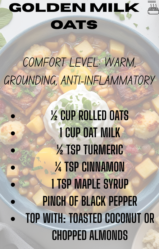 This heartfelt collection of 8 comfort recipes is designed for those quiet, rainy moments when you crave more than just food—you crave warmth, grounding, and a little emotional ease. From creamy soups and spiced porridges to cozy toasts and soul-soothing sweets, each dish is a gentle invitation to slow down and care for yourself.
